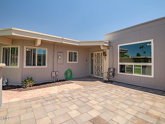 What if your next home felt like a golf course getaway—right in the heart of Sun City? Tucked along the 10th tee, this updated Gemini offers the kind of lifestyle people move here for. Just a short walk or golf cart ride to the clubhouse, driving range, and nearby amenities, you'll have everything you need right at your fingertips. Step inside to an open floor plan filled with natural light, updated windows, and a kitchen with stainless steel appliances. Both bathrooms have been beautifully remodeled with walk-in showers—making daily routines feel refreshingly easy. Step out back for find a screened-in patio that overlooks the fairway and becomes your own private front-row seat to golden hour sunsets and quiet mornings with coffee. Added bonus: this home has an assumable VA loan! under 4%, a rare opportunity you won't want to miss. Curious? Reach out today to learn more.