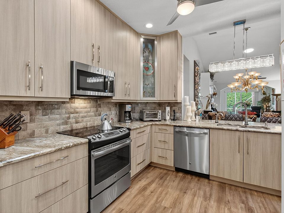 MAJESTIC ISLES--SUPER PRESTIGIOUS COMMUNITY.ACTIVE ADULT COMMUNITY.Explore the captivating warmth and modern elegance of this distinctive dwelling, situated in the vibrant, engaging adult community of Majestic Isles. Experience the inviting openness and brilliance as you step into this impeccably renovated villa, crafted with exceptional care and finesse.The property sports a newer roof and high ceilings that seamlessly extend from the kitchen to the dining, living, and Florida rooms, fostering a grand ambiance. Abundant natural light streams in through the skylight solar panels in the kitchen and living areas, magnifying the sense of space and brightness. You can find consistency in luxury: the entire residence is adorned with high-quality vinyl plank flooring, skillfully installed over the original tiles and padding. The three bedrooms each feature custom-built-in closets, underscoring the attention to detail throughout this beautiful home.