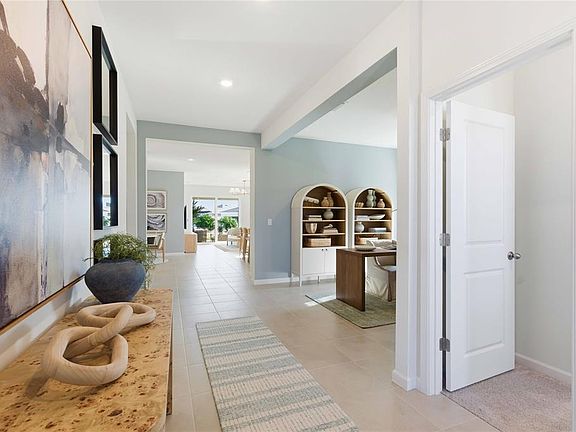 LEASEBACK MODEL Triple Net Lease. The Poinciana is a thoughtfully designed home offering 2,111 square feet of open-concept living space, blending modern comfort with flexibility. This 4-bedroom, 2-bath floor plan features spacious interiors, ideal for both everyday living and entertaining. At the heart of the home is a well-appointed kitchen with a large island that flows seamlessly into the great room and dining area—perfect for gathering with family and friends. A flexible front room provides endless possibilities, whether as a home office, hobby room, or additional living space. This home is also available with a leaseback opportunity, making it an excellent option for those seeking both a beautiful residence and a smart investment.