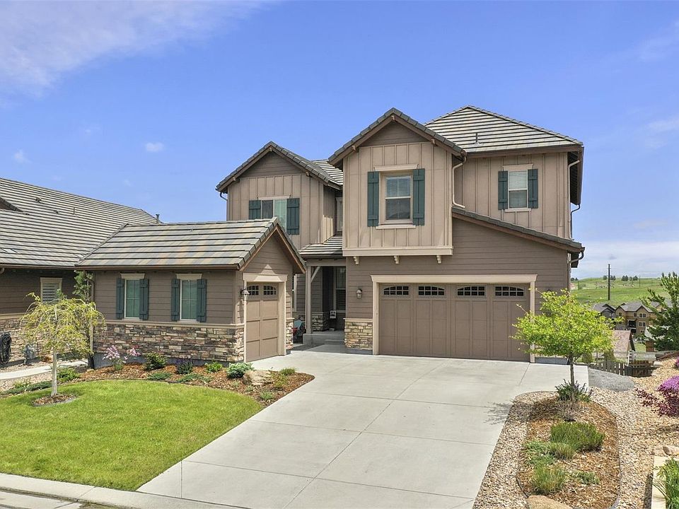 Your stunning home awaits with a prime location within the confines of the gated community of Backcountry. This incredible property is perched above the surrounding homes backing to green space with expansive views from nearly every room. When you open the door you'll be greeted by a spacious open concept living space that is perfect for both living and entertaining. The floor plan in this model is one of the most requested and desirable plans ever offered by Shea homes. The gourmet kitchen is the centerpiece of the home and provides style and functional living. Enjoy peaceful Colorado evenings on your private covered back deck with views all the way to downtown Denver. Upstairs you'll find four bedrooms including a gorgeous master bedroom and bath with all the amenities you could want. The unfinished walkout basement provides the new owner abundant storage or room for future expansion. Homes on prime lots are rare to find in Backcountry, don't miss your opportunity to own this one!