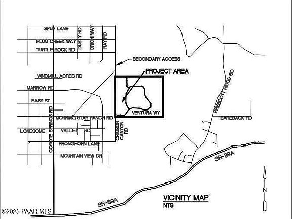 Take in the stunning panoramic views & quiet beauty of Ventura Ranch--Prescott Valley's premier estate community. As one of the only neighborhoods in the region offering 2+ acre parcels, this subdivision combines wide open space with high-end infrastructure. Enjoy paved roads, water utility access, thoughtful drainage systems, & high-speed fiber-optic internet--all set within a formally platted community. This homesite offers an ideal opportunity to build your custom dream home in a setting that feels rural, yet is just a short drive to shopping, dining, & essential services. Don't miss your chance to own in Ventura Ranch!
