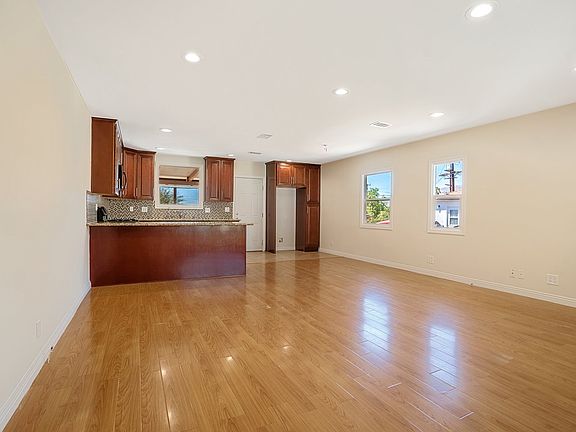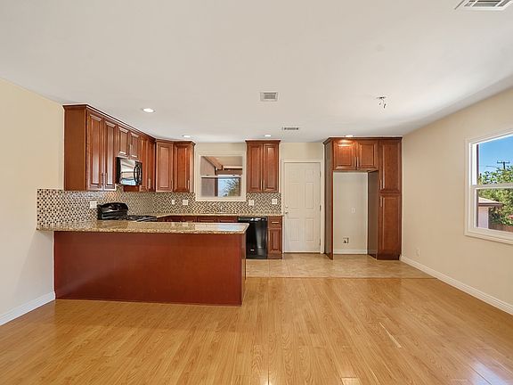 Poised in the heart of the Sunland-Tujunga are resides a charming property! This single story 1,265-sqft home has delightful character with picture-perfect exterior highlighting a neat front yard, cute front porch, and a long driveway leading to a detached single garage with room for storage. Inside, brand-new recessed lighting effortlessly accentuates the glossy honey tone laminated flooring installed throughout, freshly painted walls, and sheer openness provided by the adjoined living room and dining room as central AC keeps the whole home a comfortable temperature. Earth tone tile floors of the kitchen equipped with built-in appliances complimented the glossy granite countertops, mosaic tile backsplash, and beautiful crafted chestnut tone cabinetry. Venture does the main hallway to remark of well-sized bedrooms offering built-in closets fitted with mirrored sliding doors while the primary bedroom also includes a private attached bathroom. Both bathrooms have walk-in showers and include brand-new fixtures throughout. Just off the kitchen is swing-door access to covered back porch includes access to the washer and dryer hook-ups while peaceful views of the sizable open yard are enjoyed. Included with this property is a tankless water heater and plenty of storage space throughout. Owner pays for gardening services. No smoking. Located down the street from Verdugo Hills High School, Vons, Howard Finn Park, local shops, markets, establishments, and more!