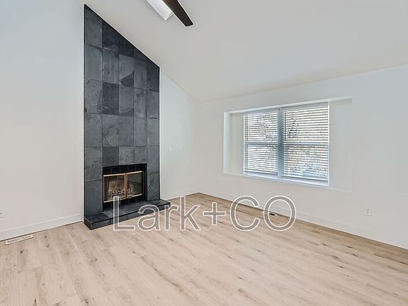 Completely remodeled from top to bottom with designer finishes and artistic touches. When you walk in you are greeted by soaring vaulted ceilings in the living room with slate-tiled wood fireplace. In the kitchen you will notice two-toned kitchen cabinets with modern brass hardware. The gorgeous dolomite countertops and black stainless steel appliances enhance the beauty of this space. The main floor powder room is accented with peacock wallpaper and navy vanity and brass fixtures. Rounding out the main floor there is another main living area, and dining area with built in shelves and cabinet. Upstairs you will find the primary bedroom with accent wall and wall lighting, primary bathroom with new green tile, second bedroom and large loft area perfect for an office, rec area or additional bedroom. The basement includes 2 more generous bedrooms, 3rd bathroom with new tile and shower as well as in unit laundry. This home includes central A/C, attached 2 car garage, smart refrigerator, sprinklers and more. Setup your showing with Lark+CO today The HOA provides access to the community pool. 18 month lease 640 or higher credit score x2 monthly rent for income pet friendly with pet deposit and monthly pet rent Amenities: