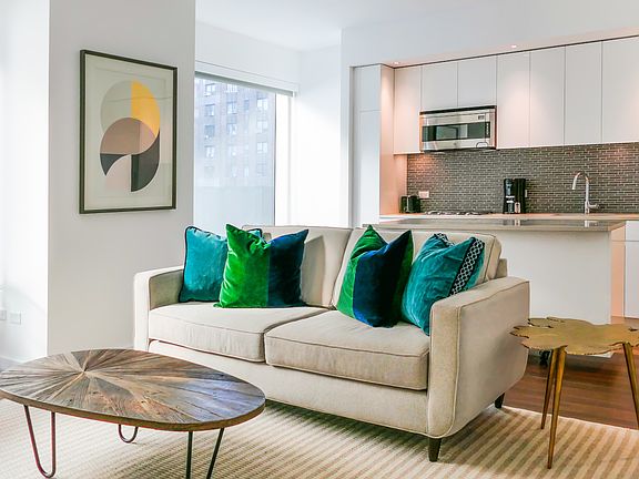 Inspired by Alvar Aalto's iconic vase, Aalto57's sculptural architecture reflects classic concepts of design both inside and out. Each residence in this boutique rental building features clean modern finishes. Amenities such as a landscaped terrace with gas grills, private and group dining areas, sun loungers, and fire feature as well as an indoor rock climbing wall, basketball court, game room, children's playroom, and a fitness center make Aalto57 a home like no other.