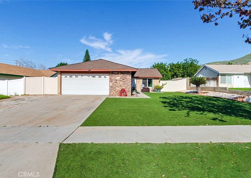 Welcome to this charming three-bedroom home with BONUS room offering exceptional curb appeal with low-maintenance artificial turf. The exterior features newer stucco with fresh paint and trim, Upgraded dual-pane Windows, a composition roof, and vinyl fencing, all contributing to both style and durability. An expansive driveway provides ample parking for multiple vehicles. Inside, the home boasts an oversized primary bedroom ( Master bedroom with retreat), nearly double the standard size, paired with a spa-like primary bathroom featuring a walk-in bathtub/shower combination with jets. Additional highlights include a permitted sunroom (257 sq ft) with access from both the patio and the primary bedroom, a tankless water heater for improved energy efficiency, and a whole-house water softener system.