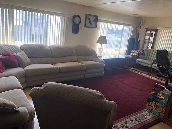 Lovely mobile home located in quiet section of senior park. Community includes clubhouse, pool, jacuzzi, tennis courts, etc. Guard post after 5:00 pm. Property includes ADA ramp, 2 sheds and spacious patio.