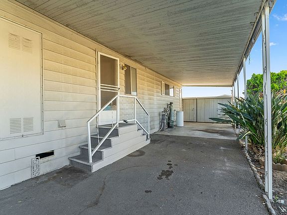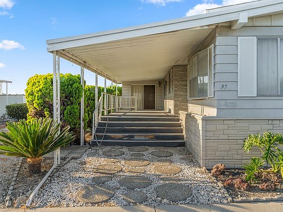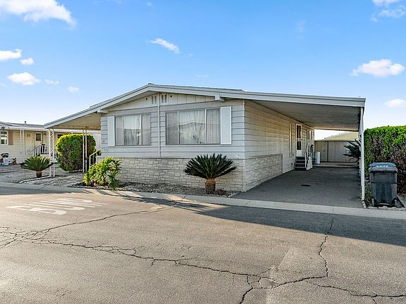 Introducing this amazing 2 bedroom, 2 bathroom mobile home nestled in the highly rated 55+ Senior Community of San Rafael Mobile Home Park. This spacious residence boasts the convenience of dual entry doors, providing easy access from both the carport driveway and a formal entry on the opposite side. The inviting living room opens up to a generous covered porch, perfect for enjoying outdoor relaxation and entertainment. Inside, the home offers the added convenience of an in house laundry area. Ample parking is provided by a large carport, while spacious storage sheds offer plenty of room for stowing personal belongings. San Rafael Mobile Park offers a wealth of amenities, including a refreshing pool, relaxing hot tub, billiard room, recreation room, meeting room, tennis courts, gym, clubhouse, and the added security of an on site guard. Additionally, pet lovers will be pleased to know that pets are welcome within the community.