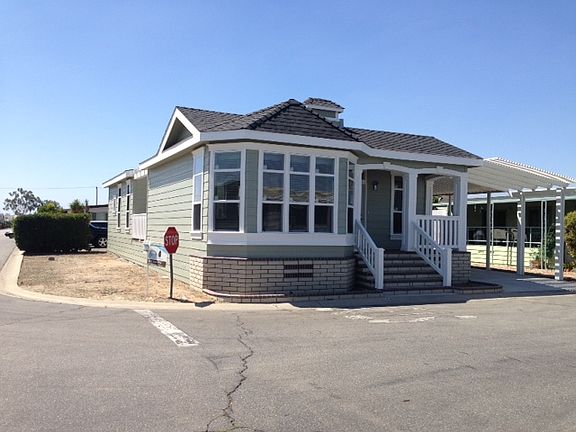 This beautiful custom home is placed on a quiet corner towards the rear of San Rafael community. Not to worry about noise from neighbors on one side. Visitors parking is conveniently placed behind the home to allow for accessibility for your guests. The park offers a quiet neighborhood with night time security. Community location is near all shopping, hospitals and freeway access not to mention minutes to the beach! Other amenities offered in the community are clubhouse, swimming pool, recreation center, tennis courts, and many more. MUST SEE!!! HOME INCLUDES: 15 month warranty All Kitchen appliances (refrigerator, range, overhead microwave, garbage disposal, etc. Washer & Dryer 9' flat ceilings AC ready White beaded hard wood cabinets New Concrete driveway Carport awnings Skirting Brick front skirting Brick front sets Low 'E" dual pane windows Crown molding Tray Ceilings