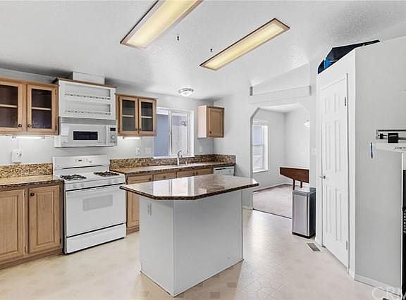 Beautiful 3 bedroom 2 bath Golden West Home built in 2002 on a nice big corner lot. Great floor plan with two bedrooms and 1 bath on the east side of the home w/ the Primary suite on the west end. This home is approx 1620 Sq. Ft and has vaulted ceilings & is well Designed and has an open floorplan that is very light and bright. The Kitchen has Granite Countertops and an island, large pantry, and nice appliances which makes this is a cook's delight. Formal Dining room and family room. This quality home offers plenty of privacy & a very rare large carport able to park up to 4 cars and a built in shed. The Primary Bedroom has a large walk in closet and the Primary bathroom has Dual Sinks, Large Tub, Separate Shower and Granite Countertops. Lots of upgrades including Air Conditioning, Vented Screens, Timed sprinklers, large covered deck to enjoy the fresh air and much more. This lovely home is in a 55+ community with gated security entry, coliseum pool, tennis courts, club facility for entertaining, and hot outdoor Jacuzzi tub. Title must be held by person over 54 years of age, and any roommates over 18 years of age are welcomed to live in the home.