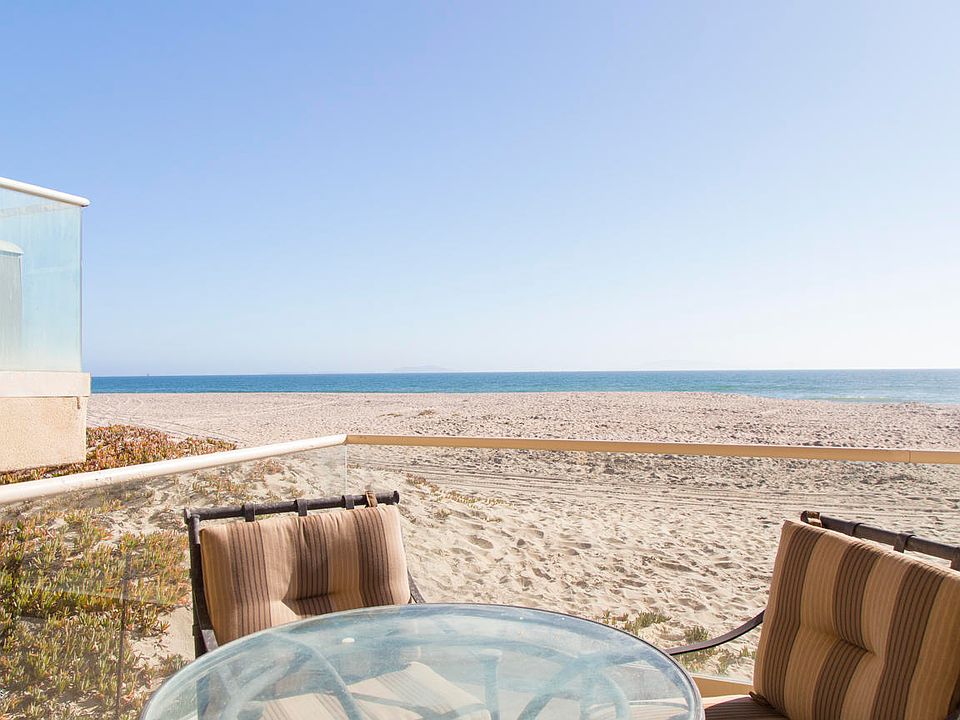 Ocean front home located in Mandalay Beach. Open up the doors to be greeted by a private courtyard in the center of the home. Here you will find a beautiful patio set, built in fire place, a BBQ, and a Jacuzzi. To the left of the courtyard is the game room and bar area, complete with pool table, bar seating, and plenty of other seating so everyone can hang out. There is also a full bath in this area. On the other side of the courtyard, you will find the entry to the main part of the home. To the left you will find the cozy TV area with views of the courtyard. Kitchen features granite counter tops, wood cabinetry, stainless steel appliances, plenty of cooking space and a breakfast counter. Past the kitchen you will find the dining area, another living area featuring a beautiful grand fireplace, and a sitting area with 180 degree views of the beach-the perfect place to enjoy your morning cup of coffee. There is also a balcony off the dining area complete with patio furniture. Upstairs you will find all four bedrooms. Available furnished or unfurnished. Utilities not included. No Pets.