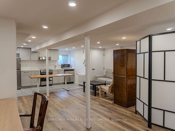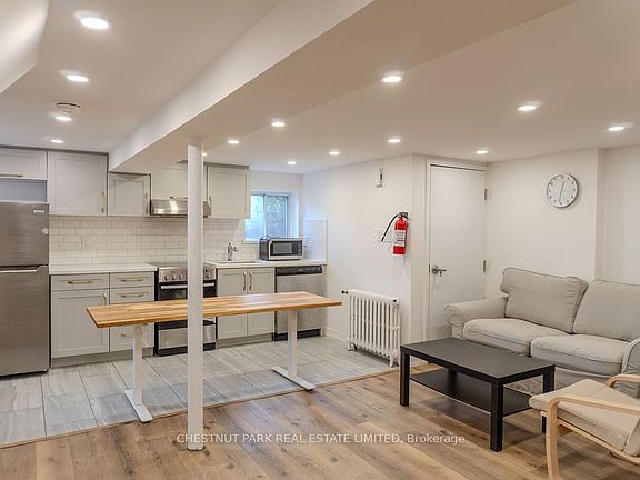 All Utilities Included - Welcome to 1065 Pape Ave in the heart of Pape Village. Short walk to grocery stores, cafes, restaurants, banks, salons, bakeries and pharmacies. TTC stop directly at your doorstep with Pape station a short distance away. Short drive to downtown and very close access to DVP Don Mills Ramp. Fully renovated only 3 years ago. This property is available for possession immediately. Laundry machine and dryer included in the unit. Private side entrance. All furniture in photos are included or can be removed.