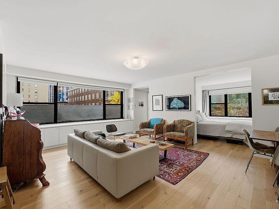 This triple-mint one-bedroom, one-bathroom residence at 1065 Park Avenue is filled with all-day sunlight and charming treetop views thanks to its open southern and eastern exposures. A wall of oversized windows in both the living room and bedroom creates a bright, loft-like ambiance, while wide-plank wood floors add warmth and sophistication throughout.