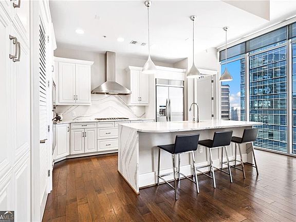 Experience unparalleled luxury and breathtaking Midtown and Piedmont Park views from this stunning 31st-floor corner residence above the Loews Atlanta Hotel. With two sides of glass, the home is filled with natural light and sweeping skyline views from every angle. Enjoy true privacy while staying steps away from the vibrant energy of Midtown and the tranquility of Piedmont Park's trails and greenspace. This exceptional residence includes rare features like a private storage unit and two parking spaces-one with a dedicated Level 2 EV charger. The sleek, modern kitchen is a chef's dream, outfitted with high-end stainless appliances, quartz countertops that bookmatch with the backsplash, and a wine beverage center. Designer lighting adds sophistication throughout, and the main living area impresses with a contemporary fireplace wrapped in limestone. An oversized island flows into the open living space, making entertaining seamless. Hardwood floors provide warmth, while expansive windows frame the cityscape from every room. The primary suite is a serene retreat with a spa-like ensuite bath featuring a Victoria + Albert soaking tub and a Carrara marble shower. Both bedrooms include custom walk-in closets, and a large utility room with washer/dryer is conveniently located off the primary suite. Residents at 1065 Midtown enjoy a heated rooftop pool, private clubroom, 24/7 concierge, and private elevator access to Exhale Spa & Gym. Exclusive Loews Hotel amenities include valet service, in-room dining, and fine dining at Saltwood. Just steps from Piedmont Park, the High Museum, Colony Square, and Atlanta's top dining and entertainment, this is Midtown living at its finest. Schedule your private tour today.