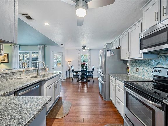 No HOA on a half acre + 100% financing available with USDA eligibility! House and fenced in backyard sit on one side and a wide-open space next to the house is ready for anything your heart desires. Premium upgrades and renovations have thoughtfully been completed so you can move in and immediately start enjoying all that coastal living has to offer. Bamboo flooring and porcelain tile flow seamlessly throughout the interior while brick, storm doors and a metal roof create a solid, low maintenance exterior. The new stainless-steel appliances, granite countertops and glass backsplash add sparkle to the kitchen while the adjoining dining room makes entertaining a delight. The large laundry room off the two-car garage comes complete with washer, dryer, sink and convenient shelving for storage. Stairs separate the bonus / flex space from the main living area offering a quiet haven away from other family activities and could serve as a 4th bedroom. The spacious primary bedroom with walk-in closet overlooks the private backyard. It's ensuite bathroom includes a double vanity, garden tub and separate shower. The fenced-in outdoor oasis includes a brand new screened in pergola with a ceiling fan to enjoy every season, a dog door with built-in ramp as well as plenty of space for a firepit, garden and entertaining. Live oaks line the property that extends all the way to the corner of Smith Rd and Pelican Ln giving extra space beyond the house and backyard. Several boat ramps, docks or marinas are nearby, along with schools, the Darien waterfront and I-95 for quick access to Brunswick, Savannah and Jacksonville. NO FLOOD ZONE. You can live, work and play all from one place!