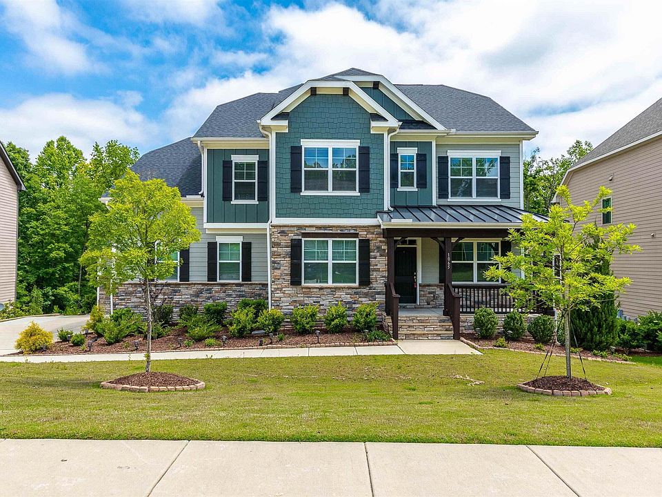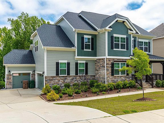 STUNNING like NEW home in The Peninsula at Amberly in Cary! This 6 bedrm 5 bath home features over 4400 sq ft on three flrs! 1st flr has guest suite w/bath, dedicated office, formal dining rm, breakfast area, family rm, screened in porch & deck! Chef's kitchen w/ HUGE granite island-perfect for entertaining. Master has his/her walk-ins. Finished basement includes movie theater, bedrm w/walk-in closet, full bath, game rm & storage. Enjoy resort-like amenities, close to 540, RTP, shopping, dining & more!