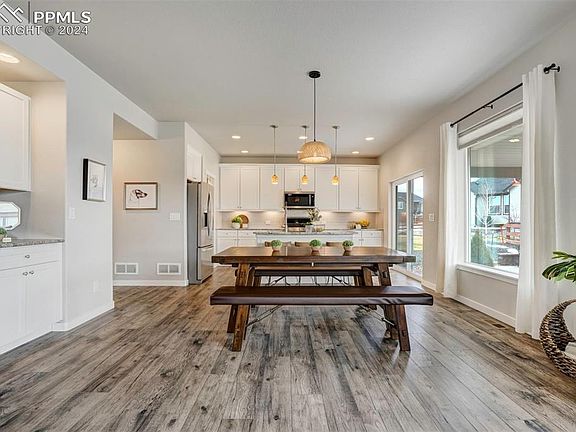 Welcome home to this pristine newly built home in gorgeous Monument, Colorado. Step inside this stylish abode where every detail has been meticulously crafted to create a sanctuary of elegance and comfort. The highly sought after floorplan offers a seamless flow, showcasing a stunning kitchen that is a chef's delight, desirable mudroom/house bench, a welcoming great room bathed in natural sunlight, and a refined main level office for those seeking a tranquil workspace. As you make your way upstairs, your primary spa-like retreat awaits, exuding a sense of serenity and purpose. Two additional bedrooms, a full bath, a spacious laundry room, and a versatile loft provide ample space for relaxation and recreation. Descend to the fully finished basement, where a generously sized family room beckons for gatherings and celebrations. Discover two more inviting bedrooms and another full bath offering a haven for guests to enjoy. Step outside to the backyard oasis, where the custom gas fire pit sets the scene for enchanting evenings under the starlit Colorado sky. The covered porch invites you to savor the mountain views with a warm beverage in hand on late afternoons with neighbors. This home truly exemplifies the pinnacle of modern amenities and finishes. Welcome to your new beginning in this exquisite house!