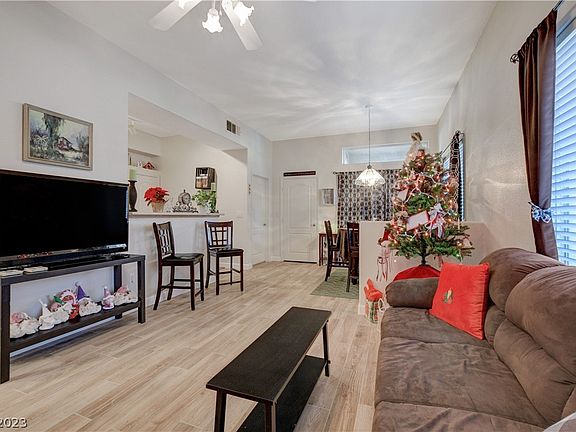 This is the perfect condo to call home. A cute 2 bedroom and 2 bath. Flooring has been updated to a gorgeous porcelain flooring throughout. Located on the first floor. As you enter into the living room, you feel at home. The fireplace gives you a warm cozy feeling. Perfect for Vegas winters. The dining room has a separate space. Perfect for your holiday dining table, straight across from the kitchen. Your friends and family can gather around and create beautiful memories. The bedrooms are on opposite sides, giving everyone their privacy. Don't let this beauty sell before you can make it yours. Come and see it for yourself.