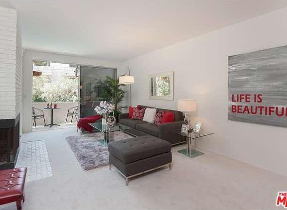 Beautiful 2 bed 2 bath in a prime Westwood location North of Santa Monica Blvd with greenery views! Features, new carpet and paint, great floor plan with one common wall, step down living room with floor to ceiling brick fireplace, large balcony, formal dining area, washer and dryer in unit, updated kitchen with stone counters and newer cabinets, large master suite with seating area and two walk-in-closets, side-by-side parking and two storage units. The building has a resort like feel with its pool, spa and grassy yard.