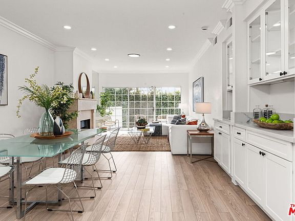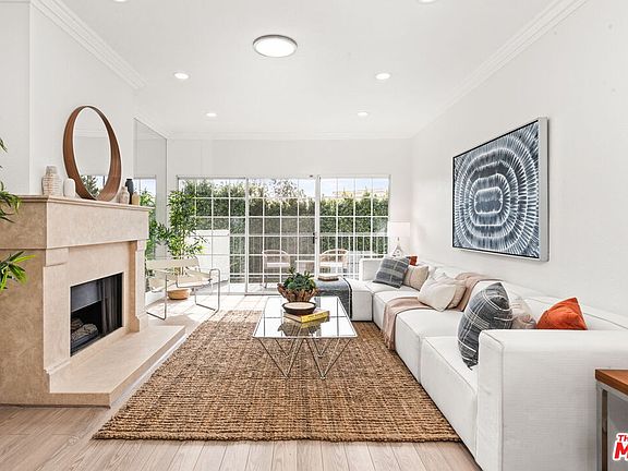 Stunning newly remodeled contemporary 2 bed/2 bath filled with an abundance of natural light and large balcony spanning the entire length of condo. Prime location on desired North of Santa Monica residential street. Formal entry opens to open floor plan with spacious living room including gas fireplace and wall of windows including sliding door to balcony overlooking pool & spa, Century City views and private landscape greenery. Dining room with built-in bar area, including glass-front cabinets, opening to completely remodeled modern kitchen with breakfast bar, beautiful quartz countertops with waterfall edge, newer stainless steel appliances, under cabinet lighting and pantry closet. Primary suite with sliding glass door to balcony, 2 closets including walk-in closet and updated primary bathroom with separate bath and shower and dual basins. 2nd bedroom also with sliding door to back balcony. Additional features include newer contemporary wood-like flooring throughout, LED lighting, Central AC/Heat, crown molding throughout, pets ok, 2-tandem secured parking spaces with storage.Earthquake Insurance included in HOA dues. Close proximity to UCLA, Westwood Blvd. retail & restaurants, Westwood Village and Westfield Century City Mall. Move in ready! Fairburn Elementary School.