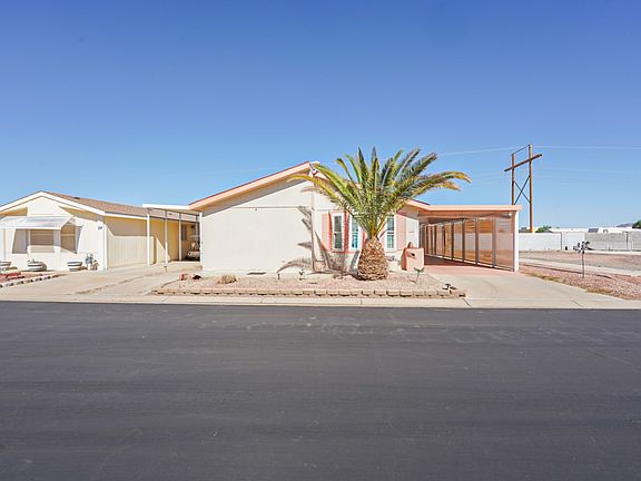 Welcome to 10650 S Avenida Compadres #23, nestled in the gated Tuscany Mobile Home Park, a beautifully maintained 55+ community offering comfort and convenience. This charming 2006 double-wide features 1,352 sq. ft. of living space with 2 bedrooms, 2 bathrooms, and a dedicated office area-ideal for working from home or enjoying your favorite hobbies. You'll appreciate the inviting living area, the bright and functional kitchen with a gas stove, and new windows that bring in plenty of natural light. Outside, enjoy a carport large enough for two vehicles and new concrete at the back patio, perfect for relaxing or entertaining. The home is fully furnished and includes a golf cart, making it truly move-in ready! Space rent is $673 per month and covers water, sewer, and trash. Don't miss your chance to enjoy the relaxed Yuma lifestyle in one of its most desirable 55+ communities-schedule your private showing today!