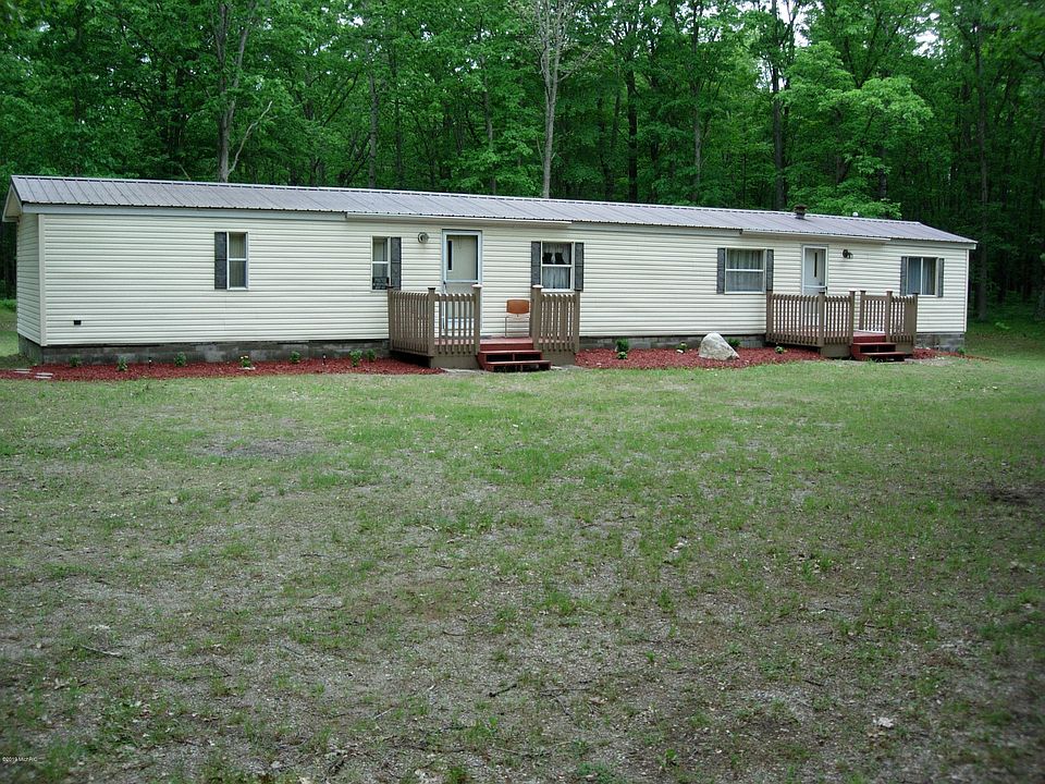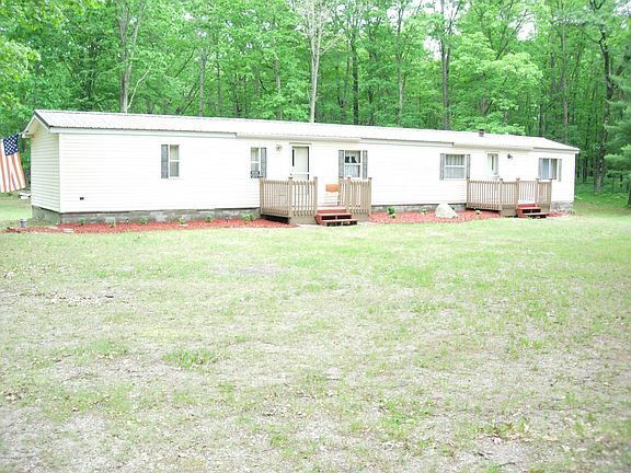 Well maintained mobile home with some updating is this 2-bedroom 2 bath year around 14'x80' mobile home or vacation retreat. The living room is good size with plenty of windows. Kitchen has lots of nice oak cupboards with adjoining dining room. The large master bedroom has its own master bath with 2 sinks and a garden tub. Outside in the back is a 24'x24' garage for the garden tools and up north toys. All this on 2.71 acres that is well wooded and private. Located on a county road for year around access.