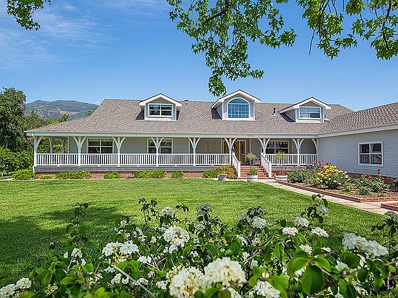 Sweeping Topa Topa Mountain Views. ''Twin Creeks Ranch'' is a multi family estate recently updated, 4125 sq. ft. modern farm house w/ wrap around porch, bright & airy, open living area including fireplace and wood burning stove, many doors leading outside affording the California life style, gourmet kitchen, upstairs entertainment area, 4 bedrooms 4 bathrooms, spacious master suite w/ walk-in closet, 2 way fireplace, oversized 2 car garage currently used as a yoga studio, Entertain at the pool w/ water fall, spa & built-in BBQ. Second modern farm house, approx. 1985 sq. ft. also has a wrap around porch, bright and airy open living area including fireplace, recently upgraded kitchen, master suite with walk-in closet, 2 bedrooms 2 bathrooms, 2 car garage w/ built-in cabinets. Finished commercial barn/garage approx. 3000 sq. ft. that could accommodate a car collection/ yoga studio, offices, solar panels, 9.75 flat acres, orchard includes Asian pear, peach, nectarine, apple trees, plum, persimmons, plenty of room to add a vineyard or horse facility, 2 seasonal creeks, affords a fully sustainable life style. Get away from the city w/ ease of location, approx. 1 hour and 30 minutes from LA , 12 minutes to Ojai or Santa Paula.