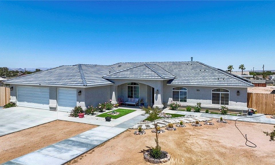 Welcome to This Stunning 2021 Built Hesperia Dream Home! Featuring 4 Bedrooms, 2.5 Bathrooms, and a Split Floor Plan. This Home Offers an Open Kitchen Concept with Beautiful Granite Countertops with an Island, a Bar Top, Stainless Steel Appliances and a Walk-in-Pantry! The Living Room has a Statement Accent Wall and a Tiled Fireplace which is Also Open to the Kitchen and Breakfast Nook. The Master Suite offers Ample Space, Featuring Dual Sinks, Walk in Closet, a Standing Shower and a Soaking Tub. There is Indoor Laundry with the Washer & Dryer Included and a 3 Car Garage. Step Outside into your Private Paradise and Enjoy Your Oversized Covered Back Patio and Lots of Additional Concrete and Cross Fencing. Additional Gazebo and Lot's Artificial Turf and Concrete. PAID OFF SOLAR, RV Access & Plenty of Space. There's Also a Fenced in Dog Area. This is the Hesperia Home You've been Waiting For!