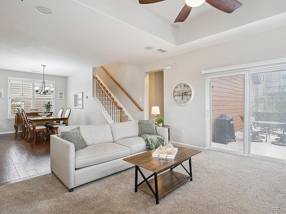 Outside, beautifully maintained private patio, surrounded by a beautifully maintained neighborhood. With the exterior managed for you, you’ll have more time to enjoy nearby trails, parks, and all the amenities Highlands Ranch has to offer. Just a short walk for groceries or coffee! Other features include - All High-End window coverings all from Hunter Douglas, Pella windows (2022), two Pella storm doors, High-End (Bradford White) Energy Star water heater, quiet & Energy-efficient Carrier HVAC system (2021) w/ multi-stage gas furnace & AC unit w/smart wireless thermostat, wired for sound & security systems, corner-lot with park views, no pets & home has been meticulously maintained! Don’t miss the opportunity to embrace a zero-maintenance lifestyle w/ this completely move-in ready, turnkey home.
