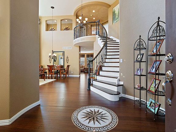 Welcome home to this remarkable, Tuscan inspired home in Highlands Ranch. This spectacular home has beautiful style and custom finishes throughout. The gourmet kitchen is gorgeous with Hickory cabinets and custom tile accents. The formal living and dining rooms are perfectly located off the kitchen and feature a dramatic two story over-look. The large family room is amazing with a stone faced gas fireplace and are flooded with natural light through the large windows. The main floor is complete with a butler's pantry, study and guest bathroom. The elegant, wrought iron railed staircase leads you to the upper level where you will find a luxurious master suite with private bathroom and incredible closet. There are two additional bedrooms, full bathroom and tech area. The basement has been professionally finished with a gaming area, wet bar, movie theater and workout room. The outdoor living space is amazing with an extended patio, hot tub and more. 3 car garage, Large corner lot & more!