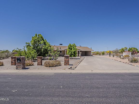 This single-level 3-bedroom, 2-bathroom home in Mesa sits on an oversized corner lot and features a thoughtful floor plan with warm, inviting living spaces. The family room fireplace adds a cozy touch, perfect for relaxing evenings. Enjoy fresh updates including brand-new carpet and take advantage of the low maintenance fenced backyard complete with an RV gate for added flexibility. A unique bonus room with built-in workbenches (not included in the square footage) provides the perfect space for hobbies, storage, or a workshop. You'll also find three spacious sheds, an outdoor firepit with built-in benches, and beautiful views of the Superstition Mountains. Septic certification completed in March. Close to shopping, dining, schools, and more! With plenty of space and character, plus no HOA