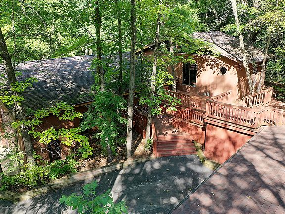 Warranty for 1 full year. A 3 bedrm 2 story home on 2.28 wooded acres with a 30x40 pole barn. 720 more fin sf in the separate office area! All furnishings remain! Great views of wildlife from the 2500 sf of decking. Hardwood flooring. Kitchen features all Jen-Air appliances, granite countertops, high end cabinetry, under counter beverage fridge & 6' Vino Temp wine cooler! Master bedrm w/walk-in closet. Notice the beautiful oak spiral staircase to the lower level entertainment center. Includes the pool table, bar stools, home theater w/newer 4KTV & awesome sound system. Leather furniture remains. The rear deck has a hot tub & gas frp w/sound system. 450 sf separate office building w/cathedral ceiling, frp, furnishings & a 1/2 bath & a 270 sf spare room. Att 2 car garage plus a 30x40 pole barn w/high ceilings & a 6''floor suitable for a car hoist. Must see dream home!!