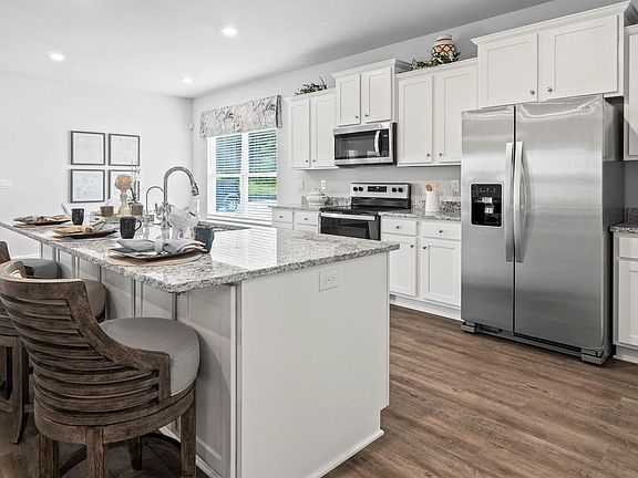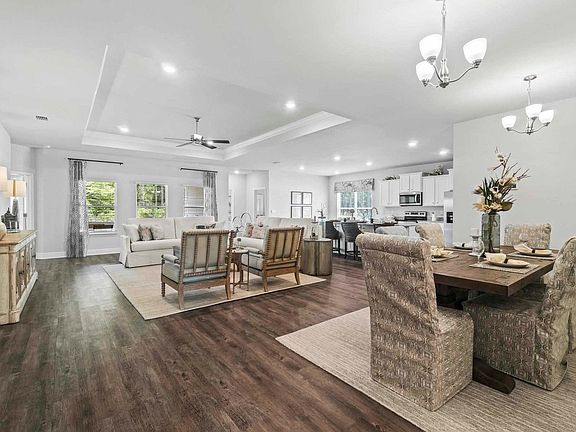The Destin plan is a beautifully designed 4 bed, 3 bath home with a covered patio and a 3-car garage. This home features a large breakfast nook and separate dining area with a very comfortable open design for easy entertaining. Interior features include stunning granite counter tops in the kitchen and baths, stainless steel appliances, a large island bar and corner pantry. Bedroom 1 is spacious with a walk in closet and adjoining bath that has a double vanity, garden tub and a large separate shower. Beautiful EVP flooring is throughout the home with frieze carpet in the bedrooms. This home comes standard with a Smart Home Technology package which includes a KwikSet keyless entry, Skybell doorbell, automated front porch lighting, an Echo Dot device and a Quolsys touch panel that can control your lighting, thermostat, front door and so much more. A five-minute ride to Interstate I10 puts you minutes from shopping, restaurants, entertainment and Pensacola Beach.
