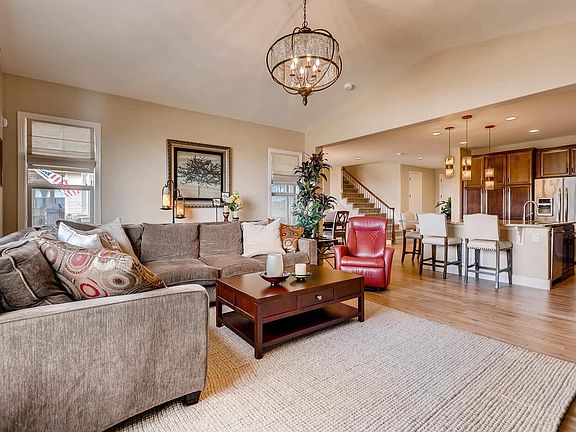 WOW! This is your opportunity to live in beautiful Backcountry on a prime lot with excellent views and backing to open space! Walk to the superb Sundial House and relax in the pool, have a massage, enjoy a drink overlooking Daniels Park, or use the fantastic fitness facilities! Stunningly beautiful home built for indoor and outdoor entertaining. Custom upgrades throughout from the hand troweled texture to the 8' doors to the custom tile and stone work. The newly-finished walkout basement offers a perfect guest getaway with bedroom, bath, kitchenette/dining area, family room, and flex space. The 12x26 covered deck overlooks the professionally landscaped back yard, complete with stamped concrete patio, gas fire pit, landscape lighting, water feature, and more! This semi-custom home has been meticulously maintained in & out. Every inch of this home has the highest quality finishes. You will love the open concept and the spectacular views! The kitchen is a chef's dream! This is a must-see!