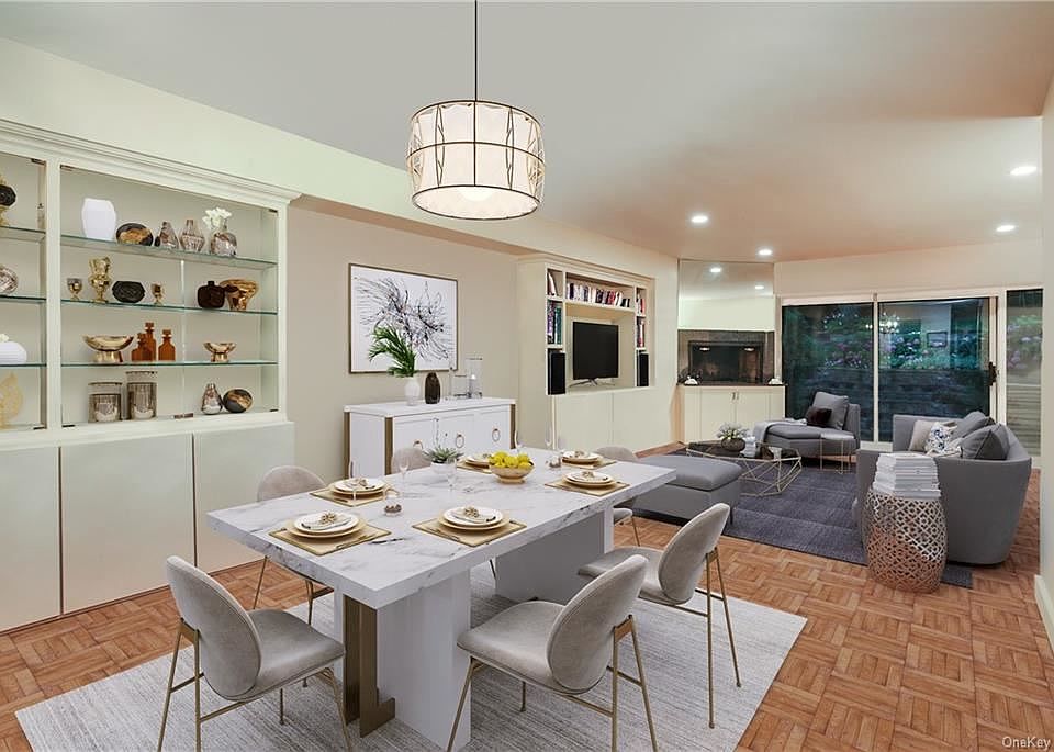 Welcome to 1066 Boston Post Road, Rye, NY. This Rye Commons Condominium is fully renovated. The 3 bedroom, 4 bath home is spacious, bright and move-in ready. The sun-filled home boasts a first floor library and office/bedroom with built-in shelves. The eat-in kitchen has been thoughtfully renovated with stone countertops, high-end appliances, storage and custom wine rack. The open floor plan is ideal and presents ample room for entertaining family and friends. Custom built-ins adorn the dining and living room. The wood burning fireplace is perfect for cold winter nights. The home is equipped with parquet floors and ample storage. The outdoor patio with lush gardens provide the ideal amount of space for intimate gatherings. Square footage does not include an additional 665 sq ft on lower level/high ceilings/could be used for storage/exercise etc. Some images reflect virtual staging.