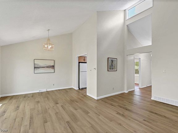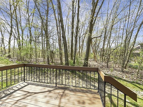 Prepare to be moved! Welcome to your future home in the desirable Greenwood Village community of Northfield, Ohio. As you step inside, you'll be greeted by a spacious, light, and bright open-concept layout. Fresh paint and updated flooring give this ranch-style home a modern and inviting feel. The heart of the home is the living room, featuring a brick corner fireplace and vaulted ceilings that add character and charm. Imagine cozy evenings spent by the fire, or opening the triple-wide slider door to your private deck and enjoying the peaceful wooded views. A designated dining area with a chandelier offers the perfect space for hosting dinner parties or enjoying family meals. The eat-in kitchen is a chef's dream, with ample counter and cabinet space, and convenient access to the attached two-car garage. The main floor also boasts the primary bedroom for easy accessibility. One additional bedroom and an updated full bathroom and half bath are also located on the main floor, providing plenty of space for family and guests. Looking for even more room to entertain or relax? The partially finished basement offers two separate recreation rooms and plenty of storage space. And with updates throughout, you can move in and start enjoying your new home right away. But the amenities don't stop there - Greenwood Village offers a wide variety of community features, including a clubhouse with indoor and outdoor pools, dry saunas, fitness equipment, and party/meeting rooms. Take advantage of the community's Marshall Lake, trails that connect to the Cuyahoga Valley National Park and Akron Bike and Hike Trails,