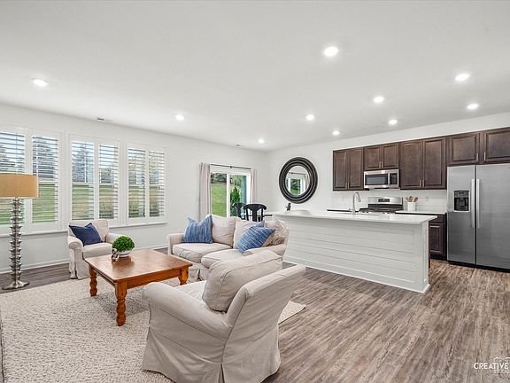 Better than new and crafted for effortless living, this stunning 3-bedroom, 2.5-bath townhome combines modern style with everyday comfort~every detail perfectly refined. From the moment you step inside, you'll feel the difference ~ this non-smoking, no-pet home has been impeccably maintained and offers a bright, open layout perfect for both relaxing and entertaining. The main level showcases wide-plank flooring, plantation shutters, and a gorgeous kitchen with quartz countertops, a large island, pantry, and stainless appliances. The newly added mudroom seamlessly combines form and function for enhanced organization. Upstairs, the primary suite boasts a custom walk-in closet and upgraded spa-like bath with dual sinks and a walk-in shower accented with natural light. Two additional bedrooms and a second full bath provide flexible space for guests or a home office. Enjoy tranquil green space views from your private patio, a 2-car finished garage, and low-maintenance living with HOA covering lawn care, snow removal, and exterior maintenance. Additional features include a whole house water filtration system. Ideally located near shops, dining, parks, bike and walking trails, U-46 schools, and SO much more! A must-see!