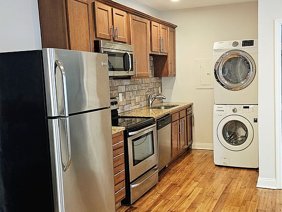 Hardwood floors throughout. Big closet with built in shelves and drawers. Stainless steel appliances. Granite countertops. Full size Samsung front load Washer and Dryer. Custom bathroom with huge glass shower doors.