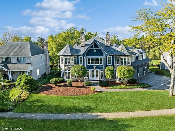 Presenting an exquisite Eaglebrook residence, enhanced with numerous upgrades and improvements. Originally built as a model, this 4,000 sq ft property boasts a distinctive, open floor plan. Bright and inviting, this home features large windows that fill every room with natural light, creating a warm and sunny atmosphere throughout. The grand foyer welcomes you into formal dining and living spaces, while the striking 2-story great room features a magnificent stone fireplace, perfect for entertaining. A first-floor office, with built-ins, is ideal for working from home. In 2021, a comprehensive renovation transformed the kitchen, featuring professionally painted white cabinetry with new hardware, updated countertops and backsplash, modern lighting, and stainless steel appliances. The main level remodel included new plank flooring and new doors and sliders, while the second floor included new carpeting and a completely remodeled primary bath. This home includes four generously sized bedrooms, all with ample closet space, plus a loft. An additional fifth bedroom in the partially finished lower level is great for overnight guests or a playroom. The spacious primary suite is stunning, with a gas fireplace and a cozy sitting area, plus a new bathroom featuring a large soaking tub, dual vanities, a beautiful tile floor, and a custom walk-in tile shower. Additional features include a heated three-car garage, a new furnace installed in 2023, and a complete roof replacement in 2024 with architectural shingles, new gutters, and new garage doors. Nestled in a prime Geneva location, east of Randall Road, this home provides convenient access to shopping, dining, coffee shops, and more. This residence is truly remarkable in every way.