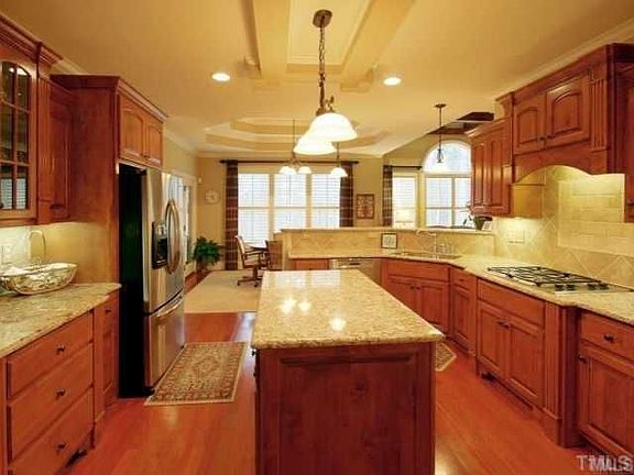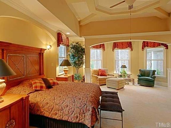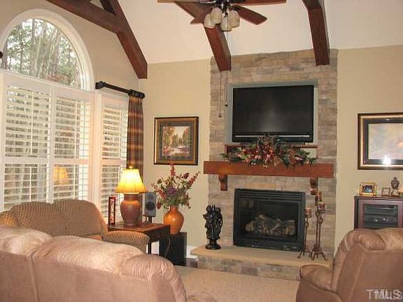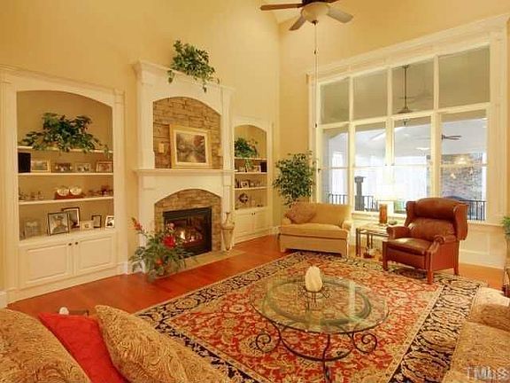 Exceptional,well-appointed ranch w/extensive details.Brazilian cherry hardwoods.Custom built-ins.3 fireplaces!Dacor gas cooktop,Miele dishwasher,dbl ovens.Dramatic architecture w/breath-taking ceilings(trey,coffered,vaulted,&beamed.Living room w/wall of windows.1st Floor Master w/sitting room.Cov'd Porch w/outdoor FP.Private lot.Minutes to Wake Forest/Raleigh