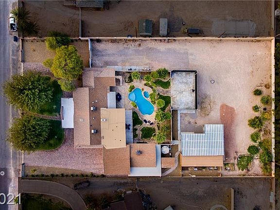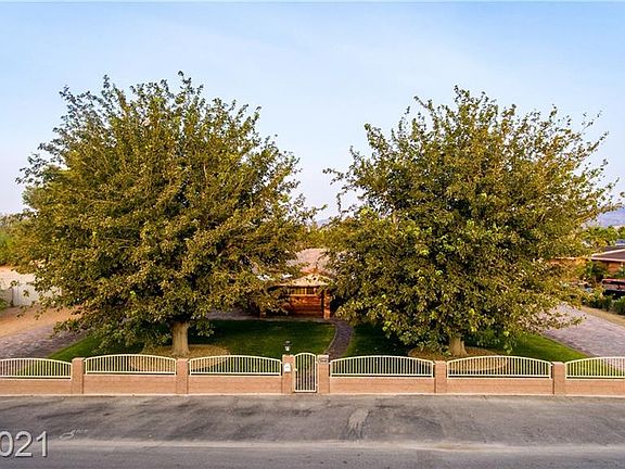Actual sq footage does not match tax records. Multi-generational DREAM! Main house is 4 bed/4 bath ranch style home with 2 FULL KITCHENS. Attached casita has add'l bed/bath and kitchen, workout room and large storage area. This stunning single story home sits on 1.14 acres with a 3-car attached garage, detached workshop, mechanic pit, basketball court, pitching mound and batting cage! Raised gardens, fruit trees, lush grass, huge mature tress and a sparkling pool/spa - truly a one of a kind oasis! Property is fully fenced/gated for privacy but NO HOA! Home has septic and private well, install solar and you would be completely off the grid. Property is zoned for horses too! Just 1/2 mile off S Las Vegas Blvd, 10 minutes from The Strip, 10 minutes from the airport and only 6 minutes from The Raider's practice stadium! Everything you could ever want in a property with the perfect location! Call today to see this beauty!