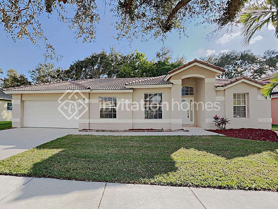 Home Features and Amenities: Air Conditioning, Fenced Yard, Garage, Long Lease Terms, Patio, Pet Friendly, Primary Bedroom on Main, Single Story House, Smart Home, Stainless Steel Appliances, Tile, W/D Hookups, and professionally managed by Invitation Homes.
