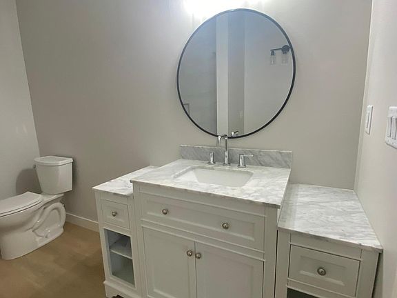 and large en-suite bath (tub, shower, separate toilet area, vanity area and double sink), 2 bedrooms with