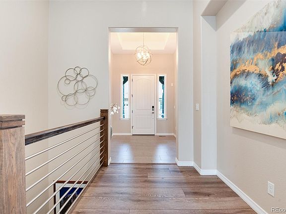 Welcome to luxury living in the exclusive, gated community of BackCountry! This stunning ranch-style home, located on a tranquil cul-de-sac with breathtaking mtn views, offers the ultimate in comfort & style. With 5 bed/4 baths, and a wealth of premium features, this property is the epitome of modern elegance. As you enter, you'll be captivated by the wide plank scratch resistant flooring & glamorous design elements that set the tone for this exquisite home. The spacious, open-concept layout is perfect for both everyday living & entertaining. The white kitchen is a chef's dream, featuring granite countertops, a large island, double ovens, & plenty of storage. The family room, complete with a cozy fireplace, provides a warm, inviting space for relaxation. The formal dining area can easily double as a lounge, offering flexibility for your lifestyle needs. The main floor primary bedroom is a true retreat, boasting a luxurious 5-piece en-suite bathroom with a soaking tub, separate shower, & walk-in closet with cedar plank flooring. Additional bedrooms are generously sized, ensuring comfort & privacy for family & guests alike. Step outside to the extended deck with a pergola featuring adjustable louvers, perfect for enjoying the serene mtn views & Colorado sunshine. The walk-out basement offers additional living space, ideal for a game room or home gym. Situated on a corner lot, this home also includes a 3-car tandem garage, providing ample space for vehicles & storage. The resort-style neighborhood offers an array of amenities, including pools, a clubhouse with a bar and restaurant, & access to 8,000 acres of open space with scenic trails for hiking and biking. BackCountry is more than just a place to live; it's a lifestyle. With a strong sense of community & a wide range of activities, you'll feel right at home in this vibrant, active neighborhood. Don't miss this opportunity to own a piece of paradise.