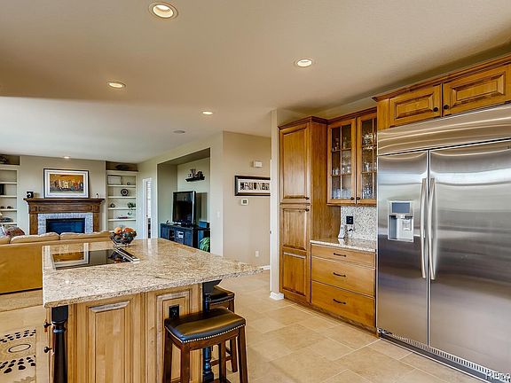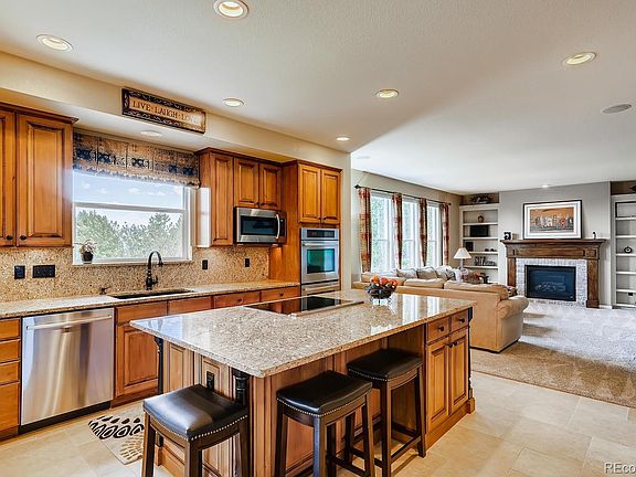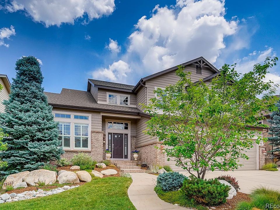 Awesome, move-in ready Beazer home in the desirable Firelight neighborhood! Majestic entry with a wood staircase and soaring ceilings. 5 bedrooms and 5 baths- 4 Bedrooms, and loft on the second level. Bedroom with an en-suite 3/4 bath on the main level. The Updated gourmet kitchen has designer finishes with a huge island, granite countertops, custom raised-panel cabinets, including a stainless counter depth refrigerator, Double oven, induction cooktop (gas line is available), eating space that leads to the covered patio. Spacious Master Suite with a retreat, two custom walk-in closet, & a luxurious 5-piece bath. Main floor study. Laundry/Mud Room off of the garage. The professionally finished basement with wine cellar, play room & bar, a theater room with seating, TV, surround sound and equipment, a bedroom, and bathroom. Large lot with great outdoor spaces including a fire pit, wired for a hot tub and a large covered back patio. Sweeping views of Denver Tech Center and Flat tops of Lone Tree. Finished 3-Car Garage with custom built-in cabinets, added lights, & a service door. This home has a fantastic location- Quiet, close to hiking / biking trails, schools, Recreation Centers, restaurants, parks, the Backcountry Wilderness Area, 470, I-25, & DTC.