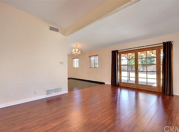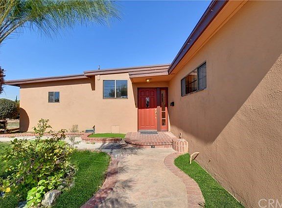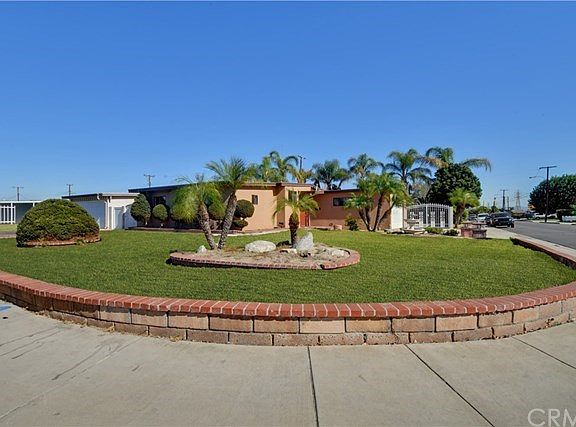 Well-maintained Great Corner Lot Home features 3 Bedrooms, 2 Full Bathrooms & 2 Car Garage. The Oversized 7,800 SF Lot provides parking for your RV or Boat. Oak Glass entry Door to an Open Floorplan with Vaulted Ceilings that have been Scraped and Textured. Living Room has brand new Laminated Wood Flooring. Oak Wooden Cabinets Kitchen with Island, Spacious Dining Area. Two Bedrooms have Ceiling Fans and One Bedroom has Mirrored Closet Doors. All Bedroom Doors are new. New Vanity in 2nd Bathroom. Newer Heater. Fresh Interior Paint through out. Double French Doors open up to a Huge Back Yard, Covered Patio and Beautiful Palm Trees for Great Entertainment with Friends and Family. Close to Freeways, Shopping Centers, Authentic Restaurants and Multi-grade Level Schools.This Home is Highly Desirable and Rarely on the Market.