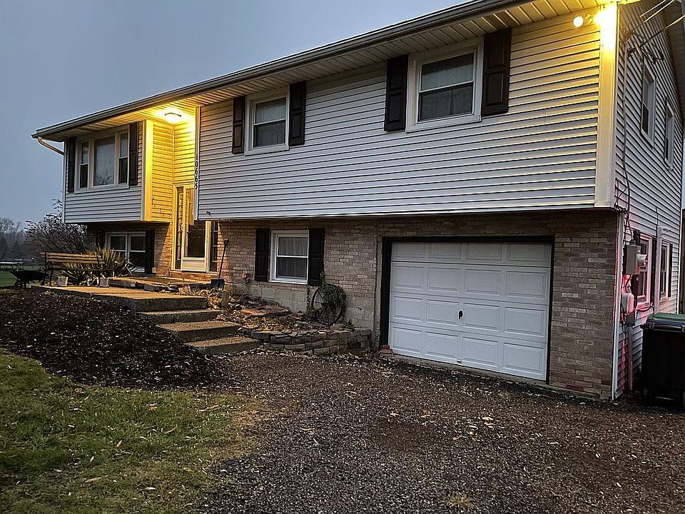 This raised ranch, single-family home is just outside of town giving it a country living feel but less than five minutes from grocery stores, gas stations, & restaurants. The home backs up to an open field that is full of wildlife that you will enjoy watching from the covered patio. This home has three bedrooms upstairs with the option of a fourth bedroom in the finished basement. Also, upstairs you will find a full bath & a cozy open floor plan that consists of the living room, dining room, & kitchen. Off the dining room you will step through the sliding glass doors to an upper deck and stairs that lead to a patio & pool below. Downstairs you will find a finished basement which is currently being used as a family room. There is a half bath in the basement as well as a wood burning stove that was just added in 2024. The overhead garage door in the basement makes it easy to host fun summer parties with an indoor/outdoor flow. The overhead door leads you outside to an oasis where you will find a privacy wall from view of the neighbors, a table made of raw edge wood, a covered patio with lighting for those warm evenings, and a cozy she shed/man cave. The home has an attached one car garage plus a 32x40 detached heated garage that was built in 2014.