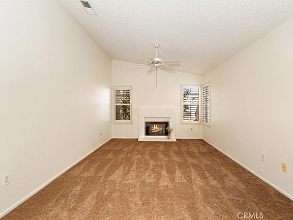 Welcome home to 10666 Cherry Hills Drive, located in the beautiful private 55+ Senior Community and SCGA rated Golf Course of Highland Springs in Beaumont also known as Cherry Valley. This home features a nice low maintenance front and back yard. Upon entering you'll see the cozy living room that has brand new carpet. The living room also features a nice fireplace and shutters on windows. There is Pergo laminate flooring in dining area and kitchen. The kitchen features tile countertops and oak cabinets. There is also a sliding glass door entry to the covered patio in backyard from kitchen. The master bedroom has new carpet, a private full bath and sliding glass door entry to backyard patio for your convenience from bedroom. The second bedroom has new carpet with ceiling fan. This community has a lot to offer for relaxation, exercise and entertainment. There's the SCGA rated golf course, pool and spa, clubhouse, tennis and more. This home is just minutes away from festive and popular 123 Farms. Make this home your home sweet home today!