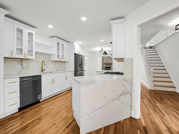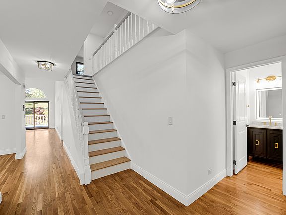 Totally reimagined from top to bottom, this exquisite 3-bedroom, 2.5-bath Tramore-style townhome in the highly sought-after Crystal Tree community is the epitome of modern luxury-showcasing a brand new custom-designed chef's kitchen with gold-accented cabinetry, waterfall quartz countertops, a full-height quartz backsplash, and premium stainless steel appliances. The main level features beautifully refinished white oak floors, elevated by elegant new baseboards throughout, and a show-stopping primary suite with a spa-inspired master bath boasting floor-to-ceiling designer tile, a custom double vanity, LED backlit mirrors, and an oversized walk-in shower. Upstairs offers plush new carpeting and a fully reimagined full bathroom adorned with marble-inspired finishes and high-end fixtures. Thoughtful conveniences include a discreet stackable washer and dryer in the primary suite, complemented by a second full laundry set in the basement. The partially finished lower level provides a versatile space ideal for entertaining, relaxing, or working from home. Significant recent upgrades include a brand-new high-efficiency furnace and AC, roof, custom-built deck with sweeping golf course views, water heater, all-new energy-efficient windows, and a newly poured concrete driveway. Blending timeless sophistication with cutting-edge finishes-and curated with an eye for detail-this home offers a lifestyle of unmatched comfort and refinement. Truly one of a kind, and it won't last long.