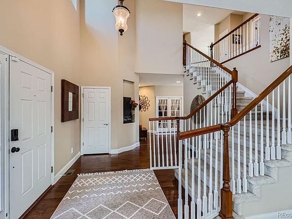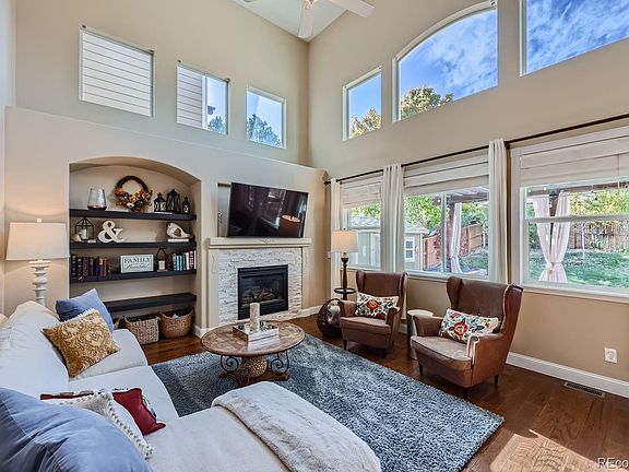 THIS IS THE ONE YOU'VE BEEN WAITING FOR! Come see this well cared for WILDCAT RIDGE home with 3-CAR GARAGE & offers 4 bedrooms, 2.5 baths, a bonus room in basement and PRIVATE BACKYARD. Immediately upon entry you'll be impressed by the gorgeous ENGINEERED HARDWOOD FLOORS throughout the main level, HIGH CEILINGS & NEUTRAL PAINT THROUGHOUT. The main level of this home features a Formal Living Room & Dining Room plus a PRIVATE OFFICE w/double door entry, Family Room w/fireplace, SPACIOUS EAT IN KITCHEN w/PANTRY & SOFT CLOSE CABINETS, 1/2 Bath and LAUNDRY/MUD ROOM. Head upstairs via the impressive staircase to wide hallways, a LARGE PRIMARY SUITE with fireplace, UPDATED PRIMARY BATHROOM w/Walk in Closet. Down the hall are 3 other bedrooms and a UPDATED FULL BATHROOM w/Dual Sinks and a gorgeous SLAB COUNTERTOP. The FINISHED BASEMENT provides a BONUS ROOM currently being used as a THEATER w/INCLUDED SCREEN, PROJECTOR & SURROUND SOUND SPEAKERS. Enjoy entertaining or relaxing outside in the PRIVATE YARD complete with LARGE DECK, gas hook up for BBQ Grill & SHED to help keep things looking neat and organized! NEW CLASS 4 SHINGLE ROOF in 2023! INCREDIBLE LOCATION & NEIGHBORHOOD! Walk to schools & Wildcat Ridge Community Pool! Close to Park & Trails! Minutes From DTC, Park Meadows, Restaurants & Shopping! Schedule your showing today or check out the 3D online tour now!