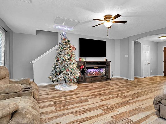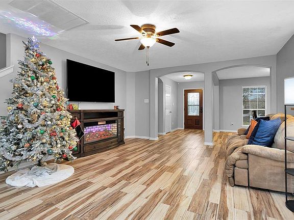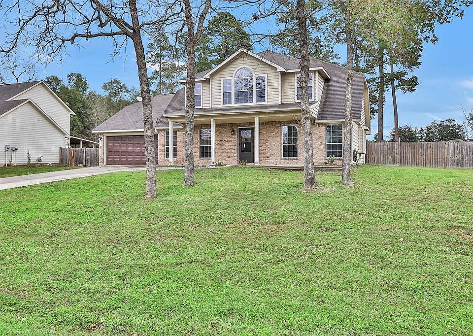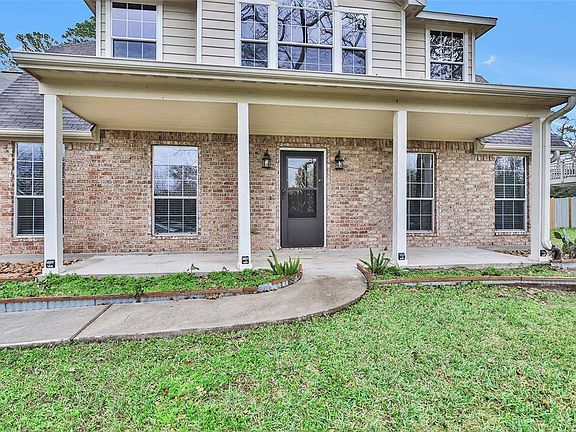 Pull up a couple of rocking chairs and get comfortable on the shady, covered front porch of this charming 2-story home. Nestled in the wooded area of Forest Creek community, no direct back neighbors, this property sits on a .45 acre lot. Spacious 4 bed, 2.5 bath home features a long driveway for extra parking. Formal dining steps away from the kitchen is perfect for entertaining & holiday meals. Family room w/large windows & plenty of natural light opens to the kitchen and breakfast area. Spacious kitchen boasts of oak cabinets w/ample storage space, a breakfast bar & walk-in pantry. Primary bedroom located on the 1st floor w/an en-suite bath, double sinks, separate tiled shower & soaking tub. 2nd floor features 3 bedrooms & a full bath w/tiled shower/tub combo. Build a life you love in your own spacious backyard ready for a future pool or playground, w/plenty of space for the littles & 4 legged friends to enjoy. Easy access to Hwy I-45 & approximately 10 minutes away from Lake Conroe.